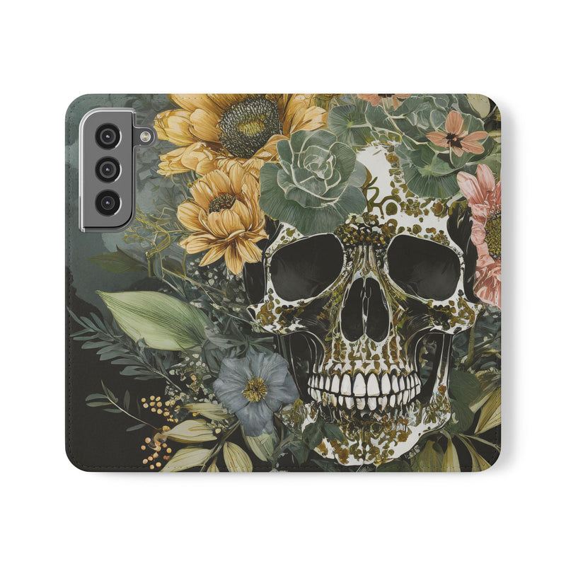Dark Floral Abstract Skull Flip Phone Case