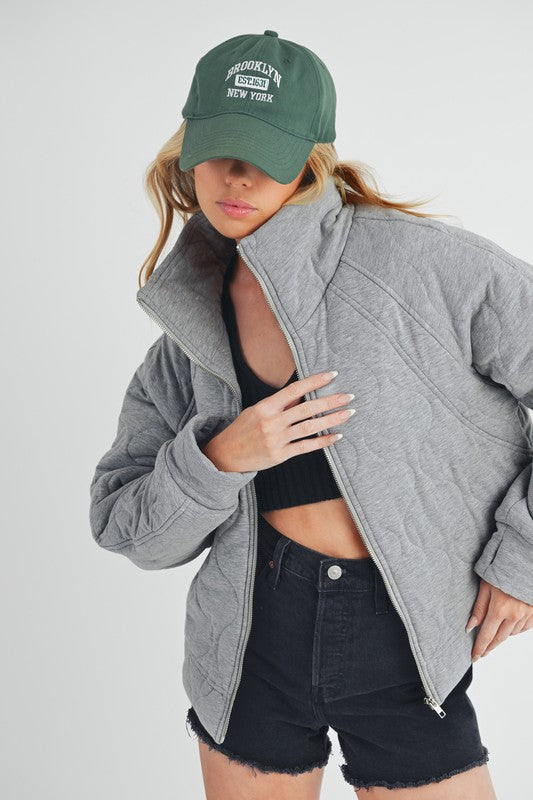 Stay cozy and stylish with this boxy quilted jacket. Its oversized silhouette and quilted design offer both warmth and a contemporary look. Featuring a relaxed fit, front zipper closure, and spacious pockets, this jacket is perfect for layering and adding a modern touch to any outfit.